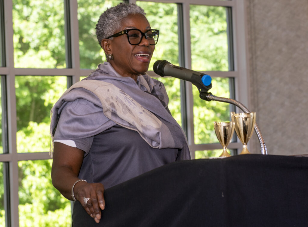 Kenya Holmes, Program Manager of the Ladders Program, addressed attendees during the awards ceremony to describe the work being underwritten by tournament proceeds. Ladders supports young adults, typically between the ages of 17 and 24, as they pursue their GED, earn vocational certifications, and build practical job-readiness skills.